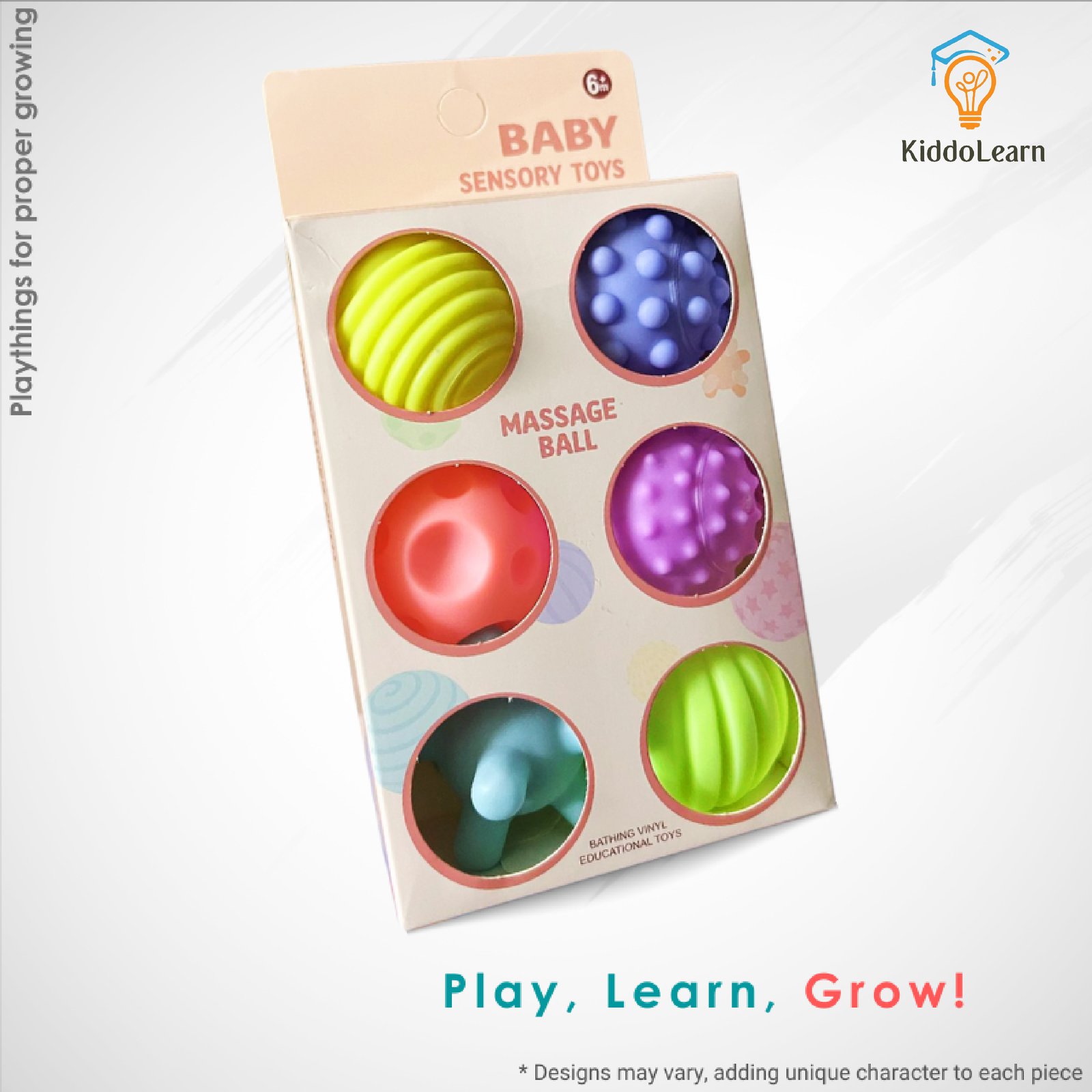Baby Sensory Massage Ball Set – 6 textured balls with funny sounds for infant development (23.5x12x6 cm). Supports tactile learning, motor skills & sensory exploration. 100% baby-safe.