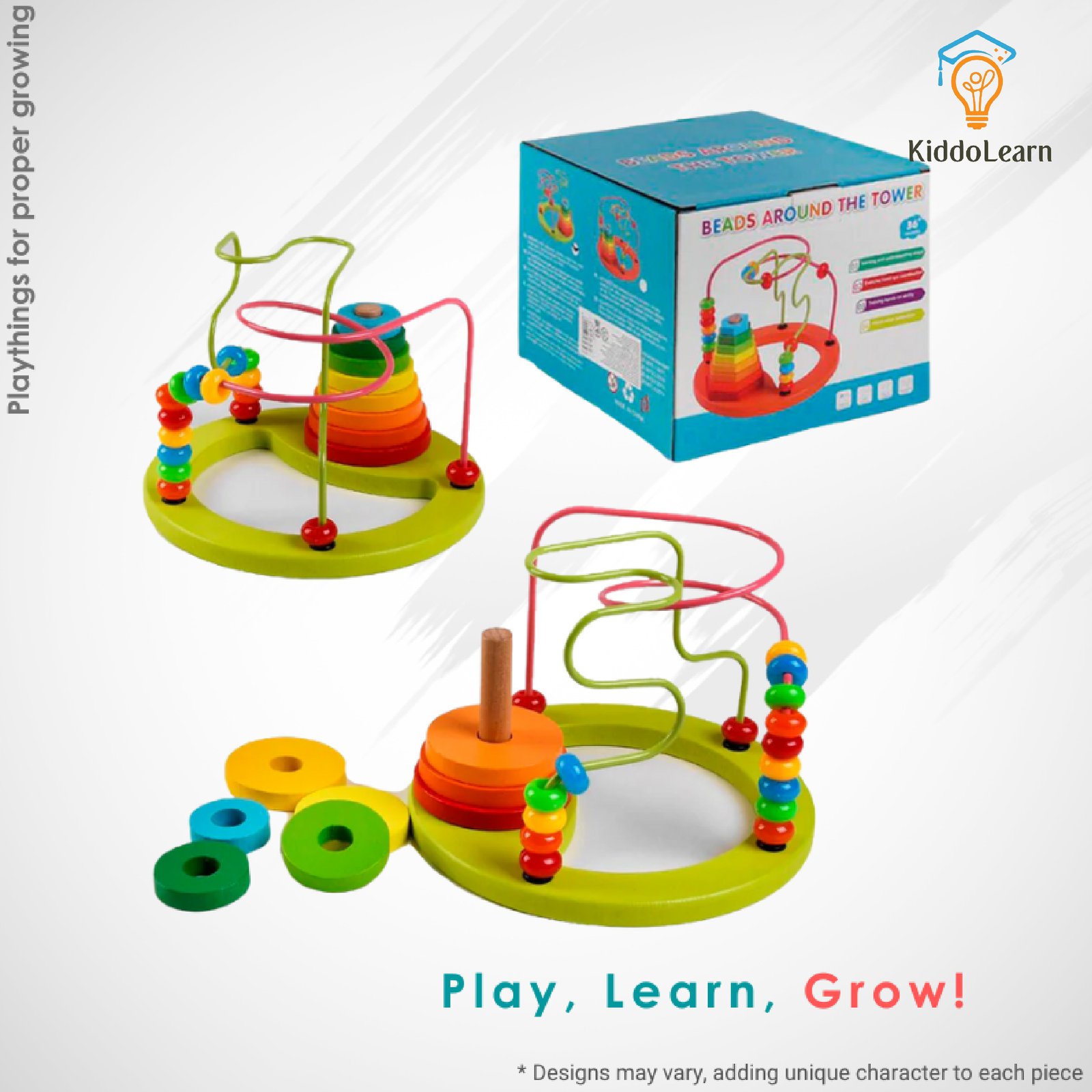 Watch your toddler’s skills grow with the Beads Around the Tower activity maze! This durable wooden toy features colorful beads on winding wires, perfect for developing fine motor skills, hand-eye coordination, and problem-solving. Made with child-safe materials, it’s a fun and educational addition to any playroom.