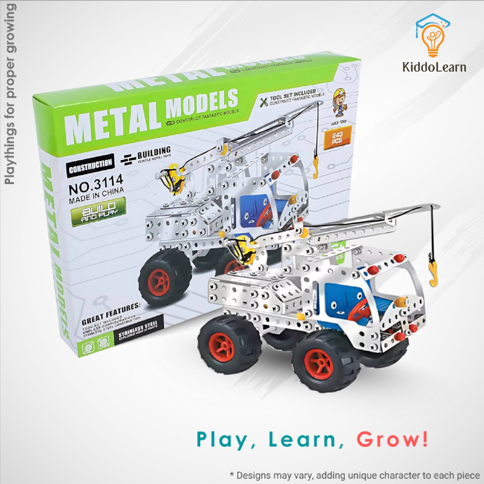 This DIY Metal Construction Vehicle Kit lets you assemble a realistic construction crane truck from 243 high-quality steel pieces. Designed for hobbyists, model enthusiasts, and teens, this kit provides a challenging yet rewarding building experience. The set includes all necessary tools, a floor mat, and a counter for organized assembly.